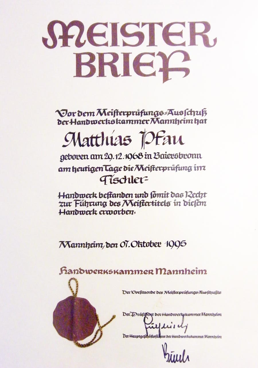 - Seit 1995 Schreinermeister